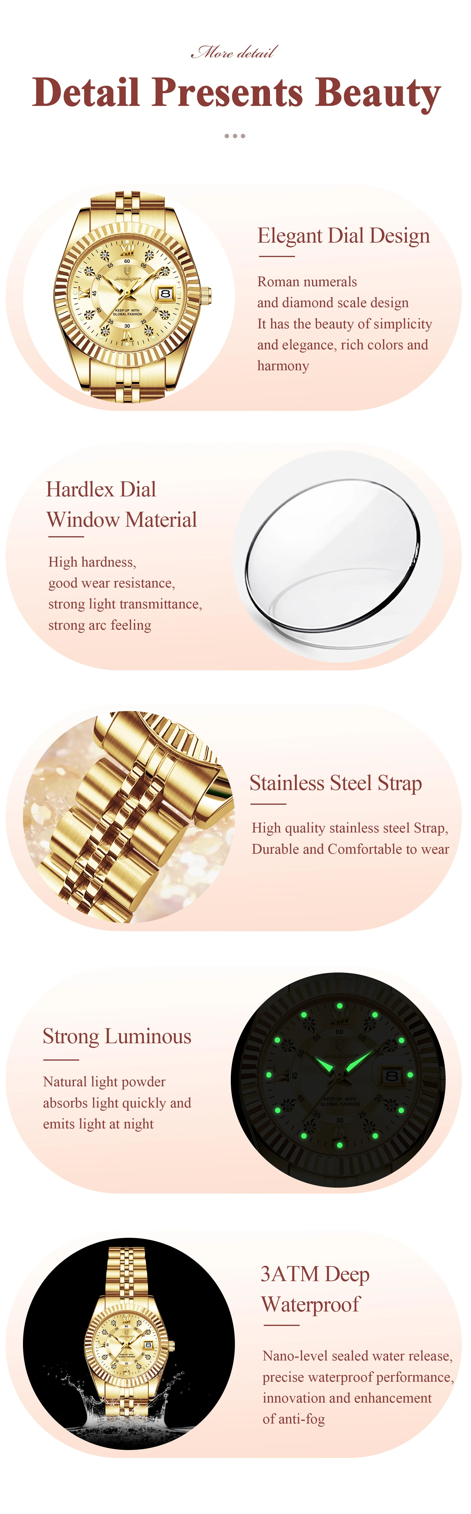 Movement: Quartz movement for accurate and reliable timekeeping